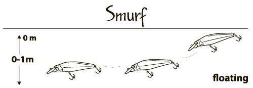 И, как и многие приманки данного класса они имеют собственную ярко выраженную игру. Но в отличии от многих, Смурф мгновенно включается в работу и стабильно работает на самых разных скоростях проводки. Важной деталью является тот факт, что для его работы необязательно вращать ручку катушки – в действие его приводит даже очень слабое течение, а рыболову остается лишь выбирать, образовавшуюся слабину лески. Эта особенность делает поведение Smurf, в воде более естественным и позволяет рыболову спровоцировать на атаку даже очень осторожного хищника. При этом, благодаря своей уникальной геометрии, воблеры данной серии очень устойчивы на сильном течении, что значительно расширяет возможности рыболова в том, что касается выбора мест ловли.